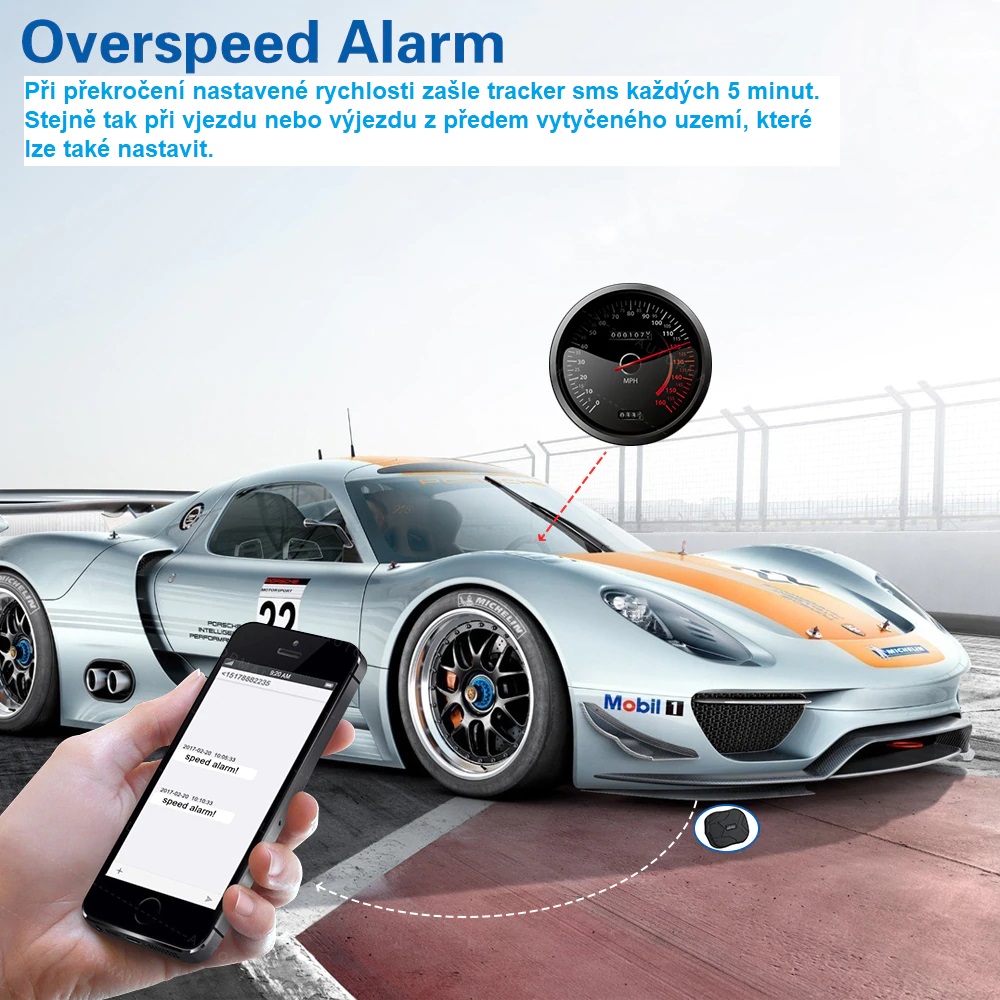 Okamžitá upozornění: Při zaznamenání pohybu, otřesu nebo překročení rychlosti vám lokátor ihned odešle SMS nebo notifikaci. 🚨