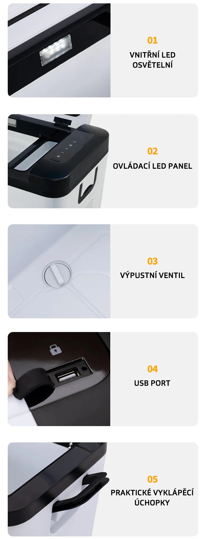 Autochladnička kompresorová s elektronickým ovládáním, rozsah chlazení od -20°C do 20°C, rychlá účinnost, ochrana proti vybití autobaterie, ochrana kompresoru. Součástí balení je adaptér do autozapalovače 12V,24V a na 230V. Lednice je vybavena USB-A konektorem pro nabíjení telefonu nebo jiných zařízení a vnitřním LED osvětlením.