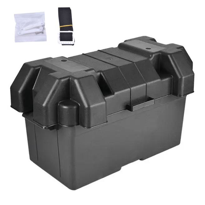 Box na LifePO4 baterie 100Ah a 120Ah. Kompatibilita možná se všemi bateriemi 100Ah z naší nabídky. Dále je možné box použít pro baterie 120Ah a 150Ah s délkou do 352 mm. V balení je popruh pro upevnění víka a úchytky prostřednictvím, kterých je možné přidělat box ke stěně.