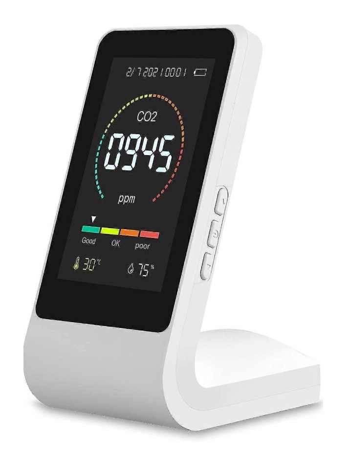 Detektor kvality ovzduší měří koncentraci oxidu uhličitého ve vzduchu a ve správný okamžik vám připomene větrání. Se zvukovou a vizuální funkcí alarmu, když koncentrace CO2 v interiéru překročí předem nastavenou hodnotu. Mimo to měří také teplotu a vlhkost vzduchu, které lze spolu s datem a časem sledovat na velkém LED displeji. Součástí balení je napájecí kabel USB-C. Rozsah měření se pohybuje v rozmezí 400-5500PPM.