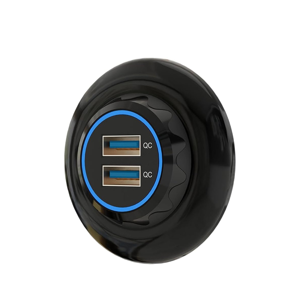 Duální USB nabíječka zásuvka pro nabíjení do karavanu 2x QC3 12V, kulatá