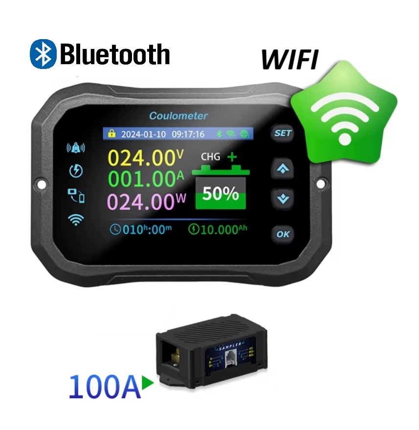 JT WIFI 100A WiFi je přesný bateriový monitor kapacity a spotřeby energie, určený pro lithiové (LiFePO4, Li-ion) i olověné baterie (AGM, GEL, Lead-Acid). Díky externímu 100A shuntu je ideální pro výkonné bateriové systémy, kde protékají vysoké proudy – například v karavanech, obytných vozech (RV), lodích, solárních a off-grid instalacích.