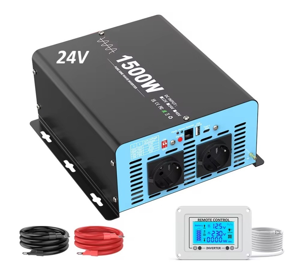 - Měnič napětí z 24/230V 1500W, porty USB, PD 30W, vzdálený kontrolní panel, čistý sinus