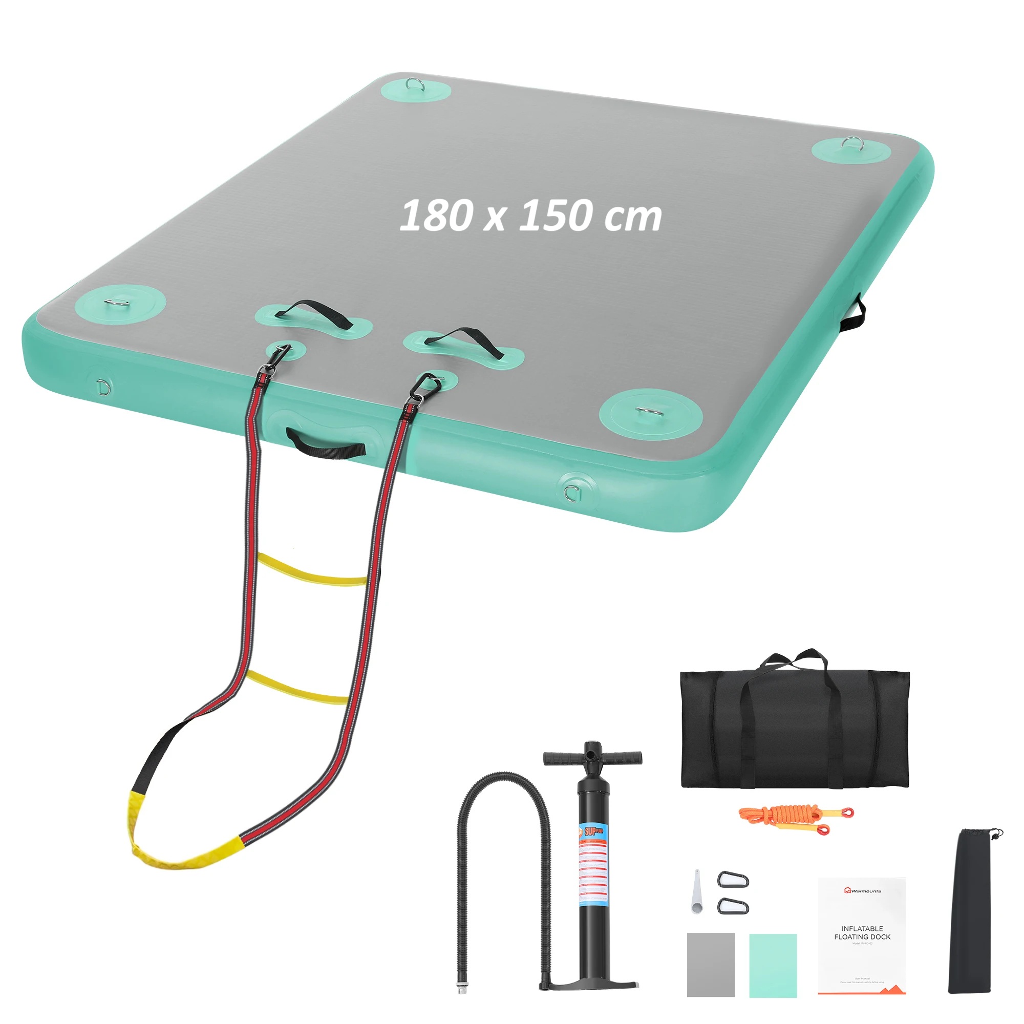 Nafukovací plovoucí molo / dok 180 x 150 cm s protiskluzovým povrchem, vysoká pevnost a nosnost, nafukovací ventil typu H-R (paddleboard)Skladem5 999 Kč/ ks4 958 Kč bez DPH