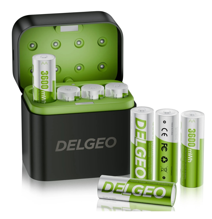 - Sada 8 lithiových baterií AA s rychlonabíječkou 2,5H - 3600mWh, 2000 nabíjecích cyklů a nabíjení typu C