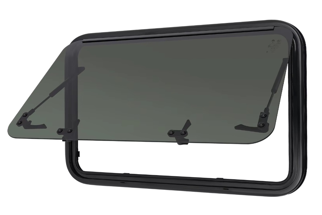 RV Camper Boční okno s tvrzeným sklem s výklopným systémem, zaoblené, roletka, moskytiéra a vnitřní rámeček, vnější barva černá, rozměr 800x500mmSkladem6 499 Kč/ ks5 371 Kč bez DPH