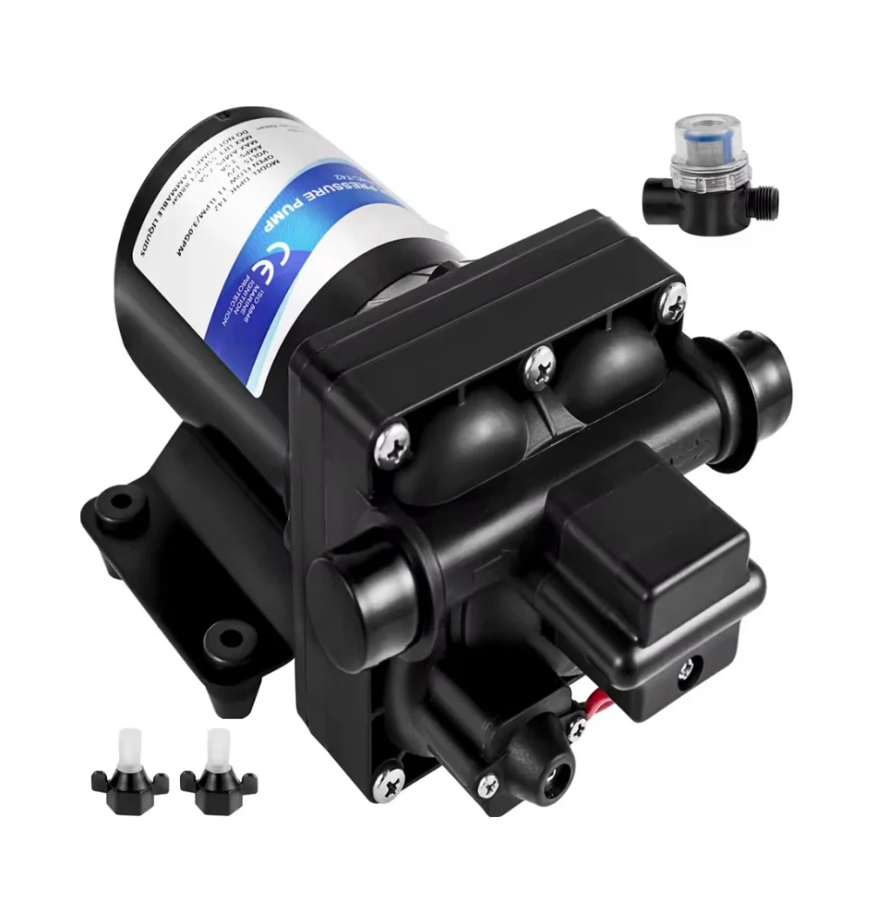 Membránové čerpadlo vhodné pro rozvody vody v karavanech, obytných vozech nebo na lodích, na chatě nebo chalupě a dalších podobných místech. Výkon čerpadla je 11,3l/min, tlak čerpadla je 55PSI a 3,8baru. Čerpadlo je napájeno 12V DC. Lze jej tedy provozovat z 12V bateriích všech typů, dále pak je možné čerpadlo připojit k síti 230V prostřednictvím transformátoru 12V (minimum je 15A). Transformátor není součástí balení.