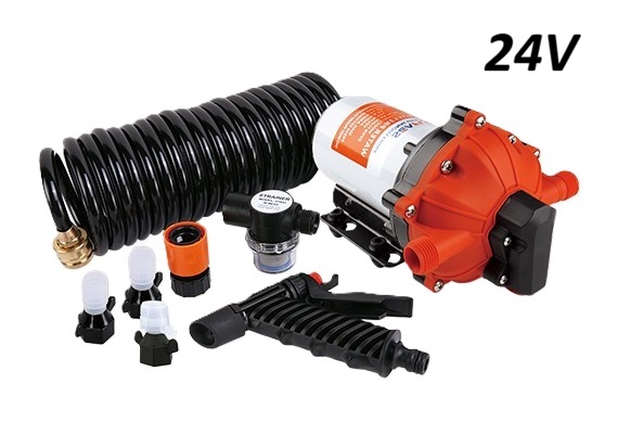Tlakové membránové čerpadlo 19,7l/min, tlak 70PSI (4,8bar), napájení 24V, Seaflo – Mycí sada