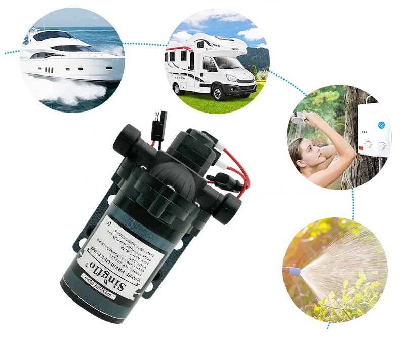 Membránové čerpadlo vhodné pro rozvody vody v karavanech, obytných vozech nebo na lodích, na chatě nebo chalupě a dalších podobných místech. Výkon čerpadla je 26l/min, tlak čerpadla je 60PSI a 4,2baru. Čerpadlo je napájeno 12V DC. Lze jej tedy provozovat z 12V bateriích všech typů, dále pak je možné čerpadlo připojit k síti 230V prostřednictvím transformátoru 12V (minimum je 25A). Transformátor není součástí balení.