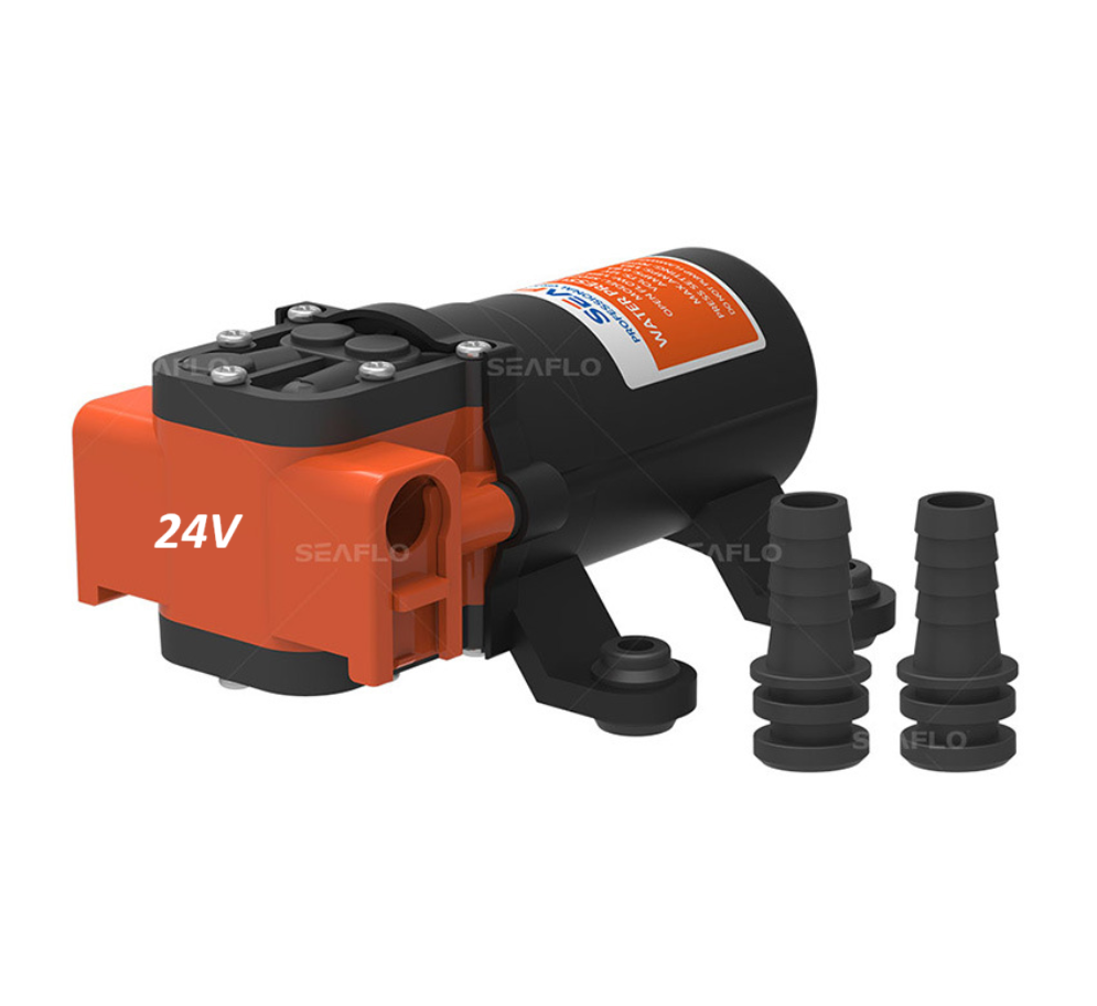 Tlakové membránové čerpadlo 3,8l/min, tlak 40PSI (2,8bar), napájení 24V, SeafloSkladem1 499 Kč/ ks1 239 Kč bez DPH