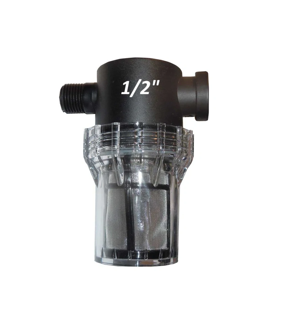 Vodní filtr v hodný pro velkou škálu aplikací. Filtr má odnímatelné transparentní víko, které umožní snadné odstranění nečistot zachycených na filtru. Hustota filtru 80 mesh zamezí průniku menších i větších nečistot do vodovodního systému včetně čerpadla. Filtr umisťujeme před čerpadlo, pokud je nasávací a za čerpadlo pokud je ponorné.